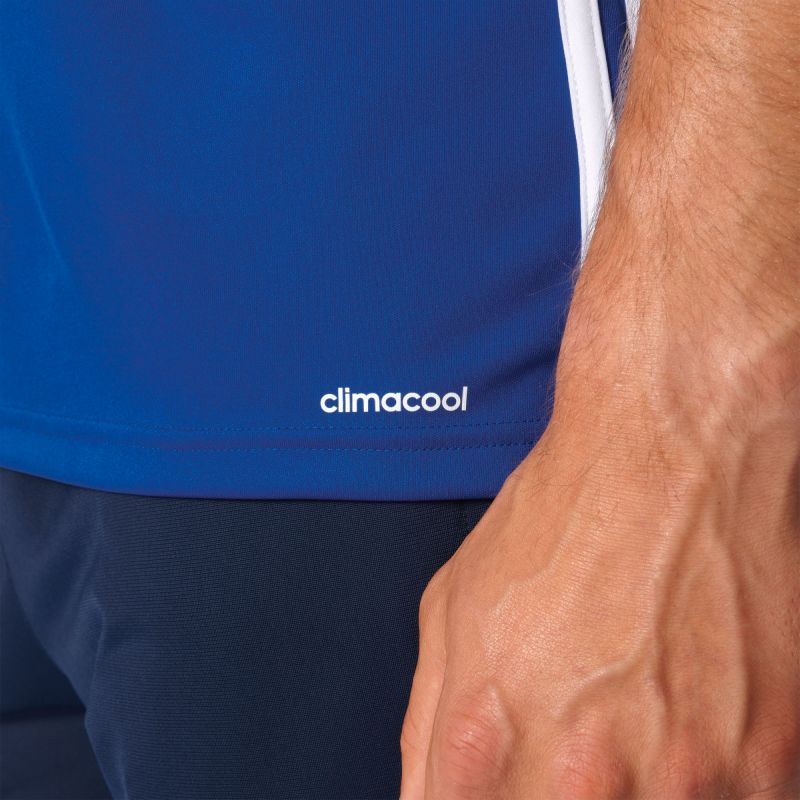 made of polyester in climacool technology , which provides ventilation, wicks sweat and gives you a feeling of dryness