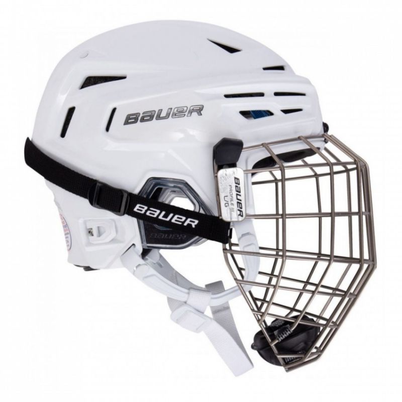 Adjustable! Bauer Re-akt 150 Combo Hockey Helmet. The RE-AKT 150 COMBO helmet comes with a PROFILE III protective grille. This helmet is Bauer's answer to the fact that 78% of players find hockey helmets difficult to fit. That's why Bauer designed this revolutionary helmet with the most versatile size adjustments on the market. Why choose this helmet? Here are a few reasons: The three-piece, adjustable shell provides revolutionary size adjustment options for every head type. The comfortable liner ensures maximum comfort. The lightest professional helmet on the market. The lowest profile among professional helmets. The quick and easy, tool-free helmet adjustment system. Patented ultra-light VTX foam technology protects the head from head to toe. The unique IX Foam provides maximum impact protection in critical areas.
