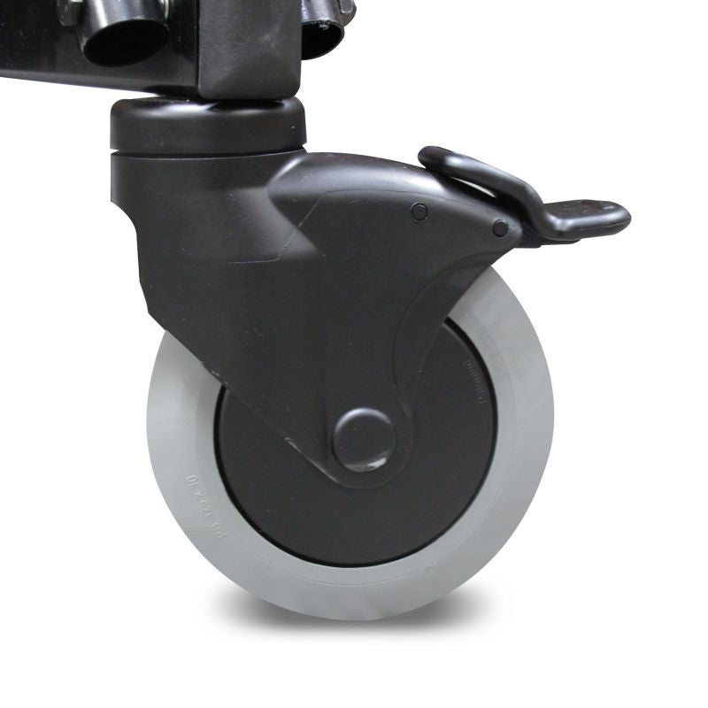- LARGE WHEELS WITH BRAKES Great maneuverability thanks to 4 wheels with brakes, 125 mm in diameter and 35 mm thick.