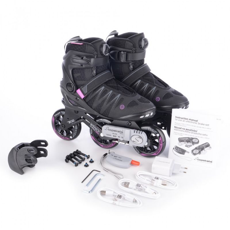 - Braking on these skates is now more comfortable, safer, simpler and more efficient than a classic brake located behind the rear wheel!