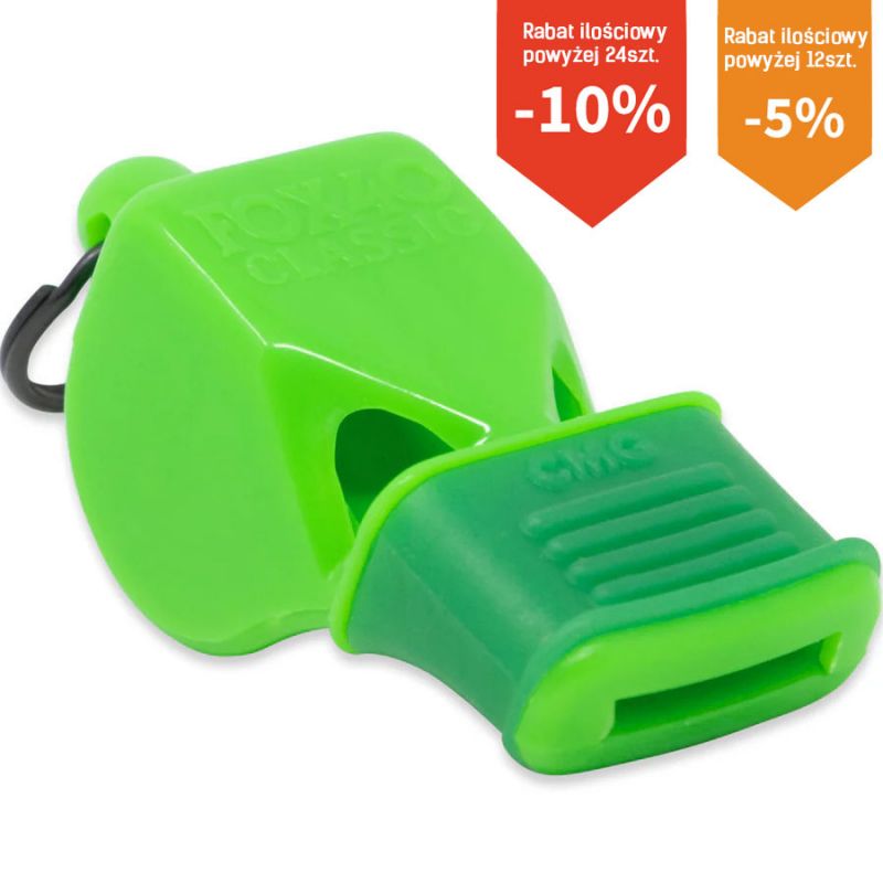 Whistle equipped with a mouthpiece increasing protection and hygiene of the mouth and more reliable control over the sound. FOX 40 CMG Official Classic has a unique sound as it is a ballless whistle. It is made of plastic.
